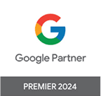 Google Partner badge displaying the Google logo, the text "Google Partner," and a gray bar below labeled "Premier 2024"—a mark of excellence in marketing and CRM solutions.