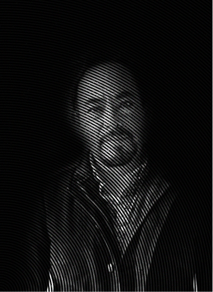 A man with a beard and mustache is shown in low light, with circular lines creating a textured overlay on the image, evoking the layered complexity of search engine optimization.